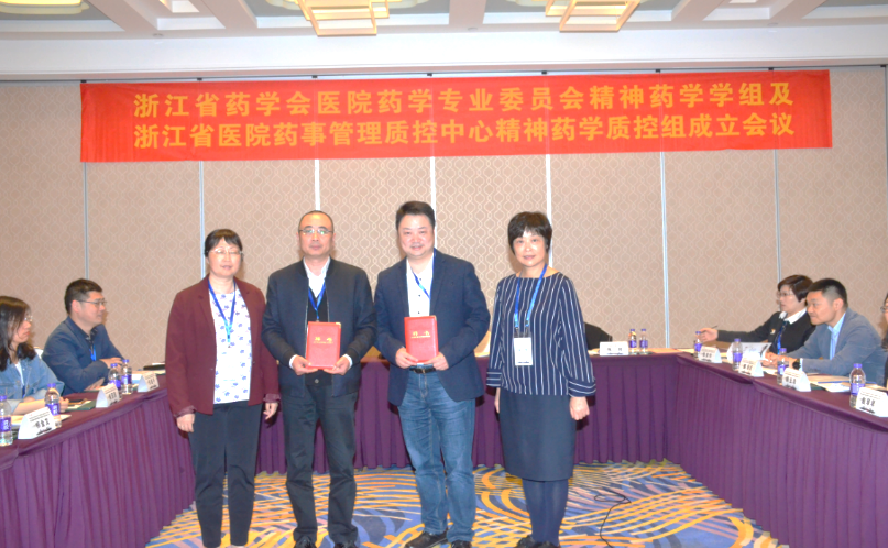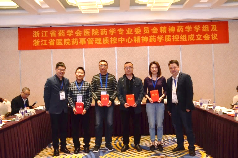 为进一步规范我省抗精神疾病药物的临床应用,加强药师对精神疾病患者用药的监护与管理,增进从事精神疾病专业领域药师间的交流与合作,切实提高精神药学服务水平,保障精神疾病患者的合理用药,2018年4月25日下午浙江省药学会医院药学专业委员会精神药学学组及浙江省医院药事管理质控中心精神药学管理质控组宣布成立,并召开了第一次学术交流会议。浙江省药学会副秘书长马珂、浙江省药学会医院药学专业委员会主任委员卢晓阳、浙江省药学会医院药学专业委员会秘书王建平、浙江省立同德医院药学部主任李功华、浙江省立同德医院药学部副主任张美玲、杭州市第七人民医院主任药师王泽民出席了成立仪式。