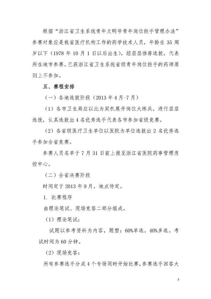 关于举办第三届浙江省医疗系统青年药学技能竞赛的通知