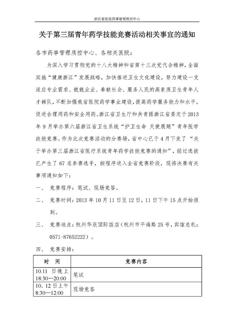 关于第三届青年药学技能竞赛活动相关事宜的通知