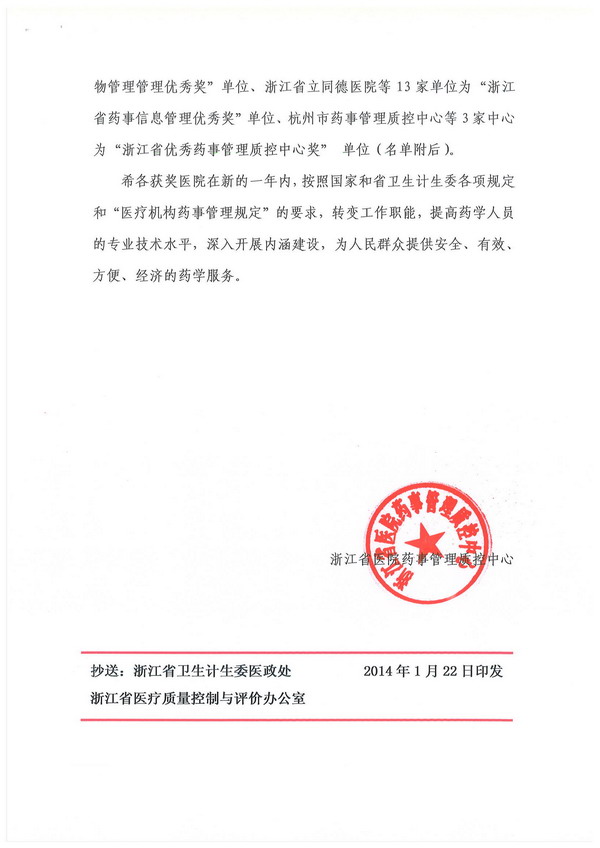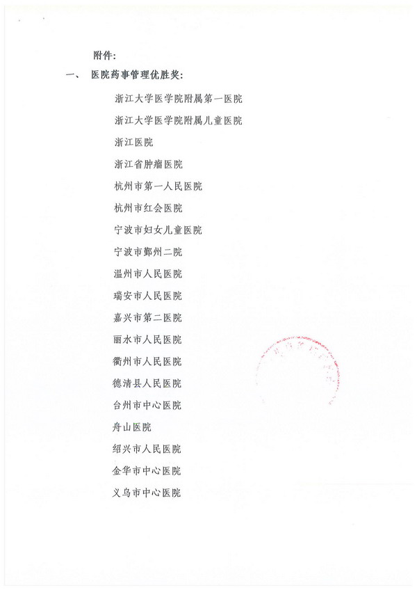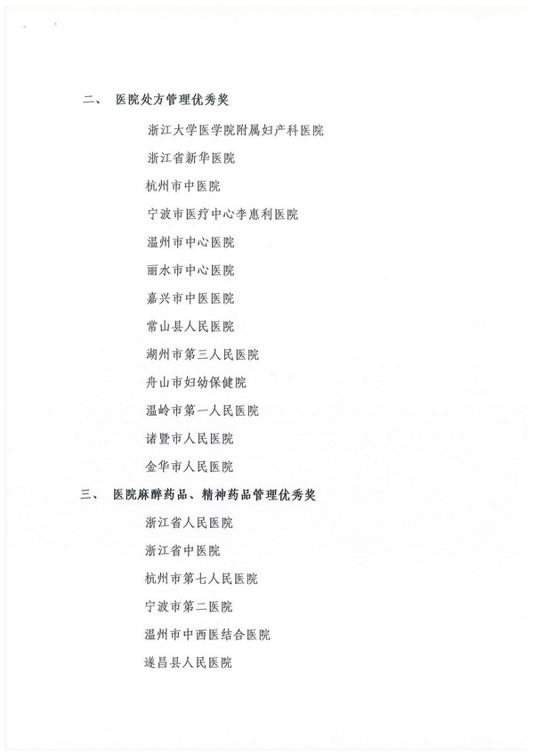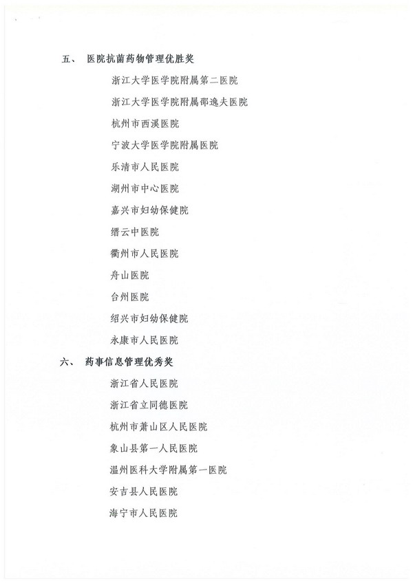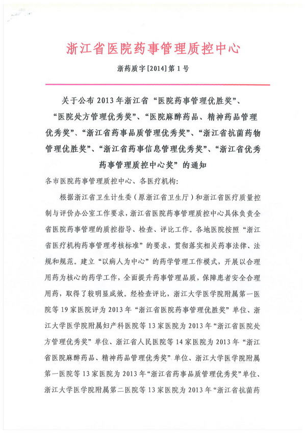关于公布2013年浙江省“医院药事管理优胜奖”等奖项的通知