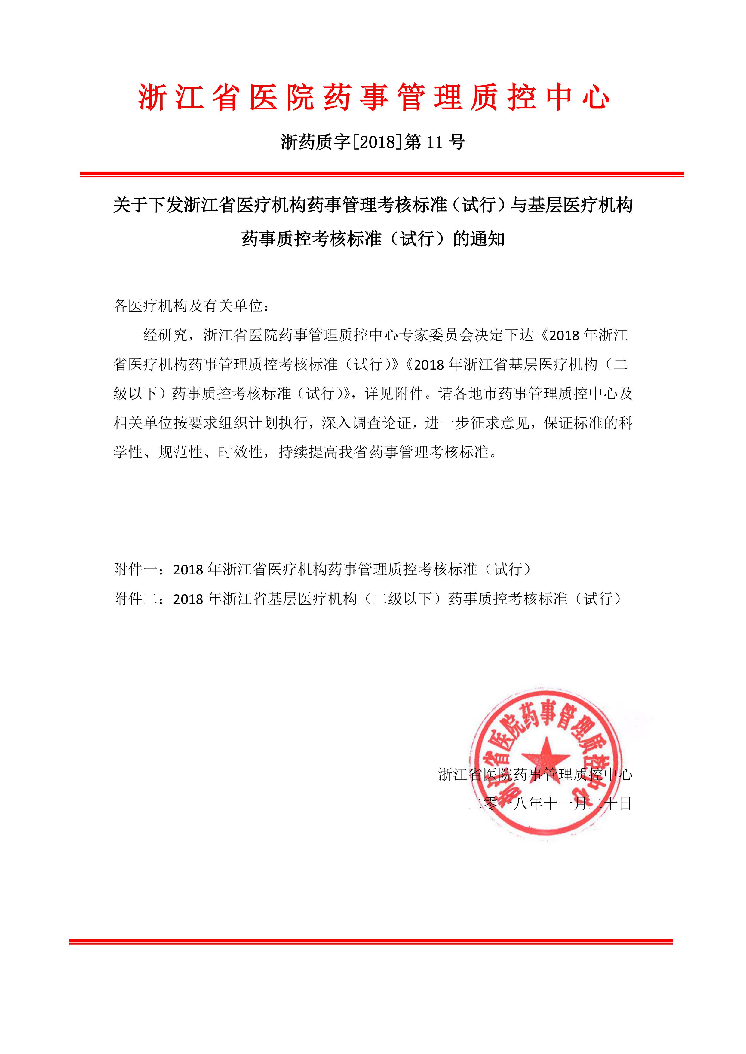 关于下发浙江省医疗机构药事管理考核标准(试行)与基层医疗机构药事质控考核标准(试行)的通知