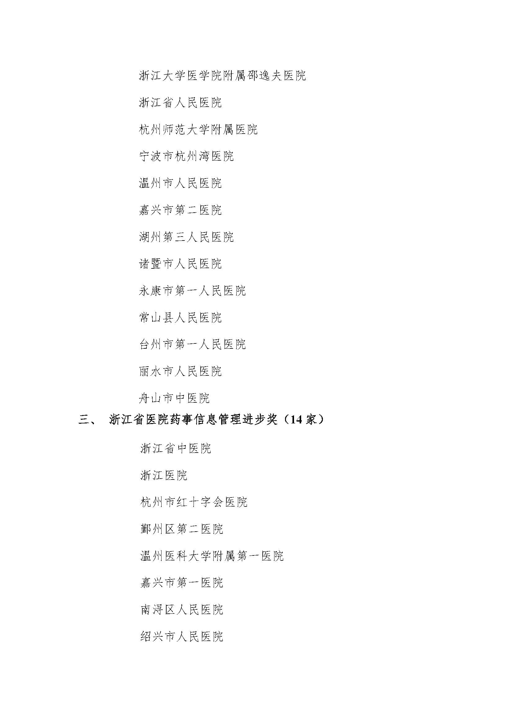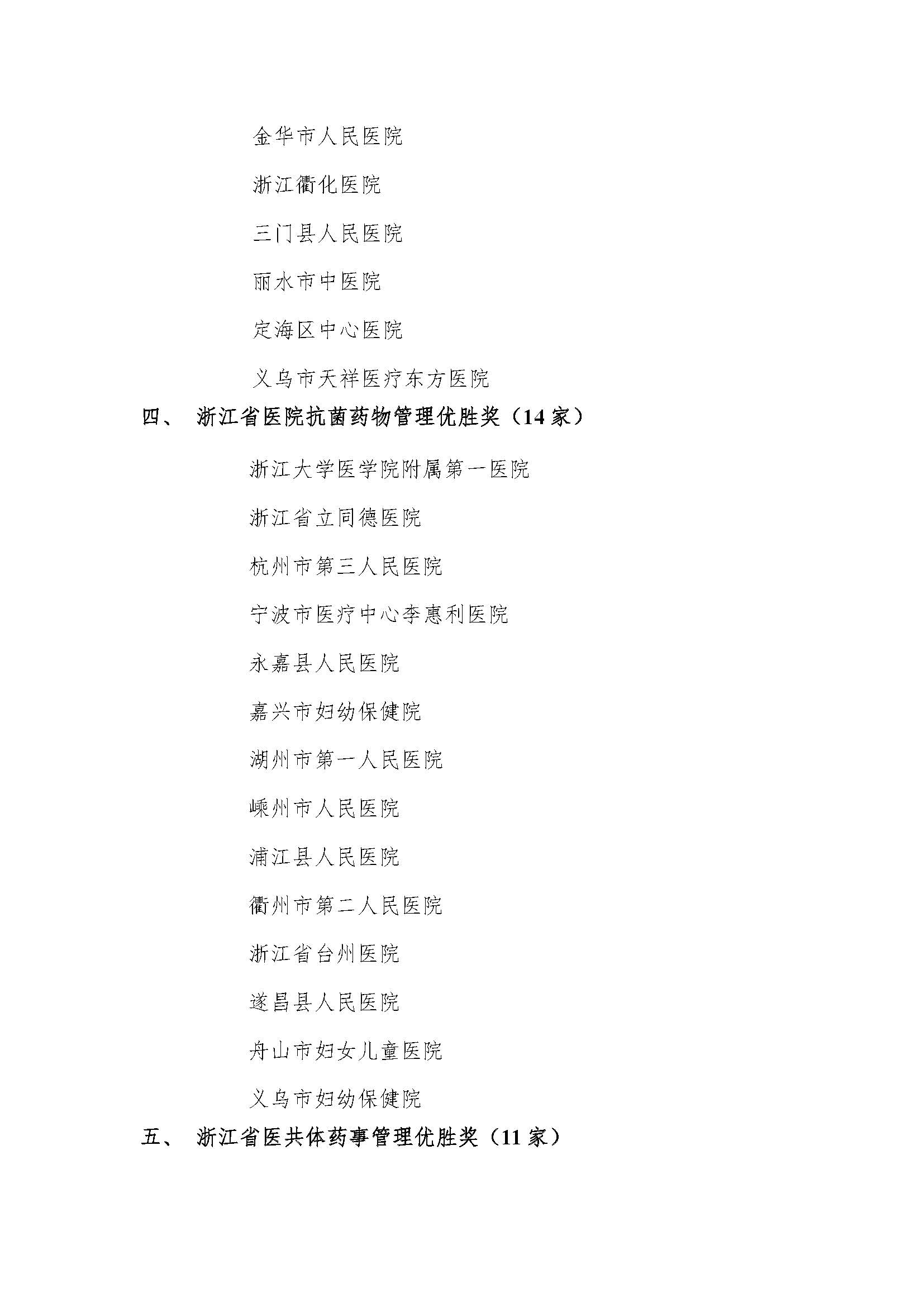 关于公布2020年浙江省医院药事管理优胜奖等奖项的通知