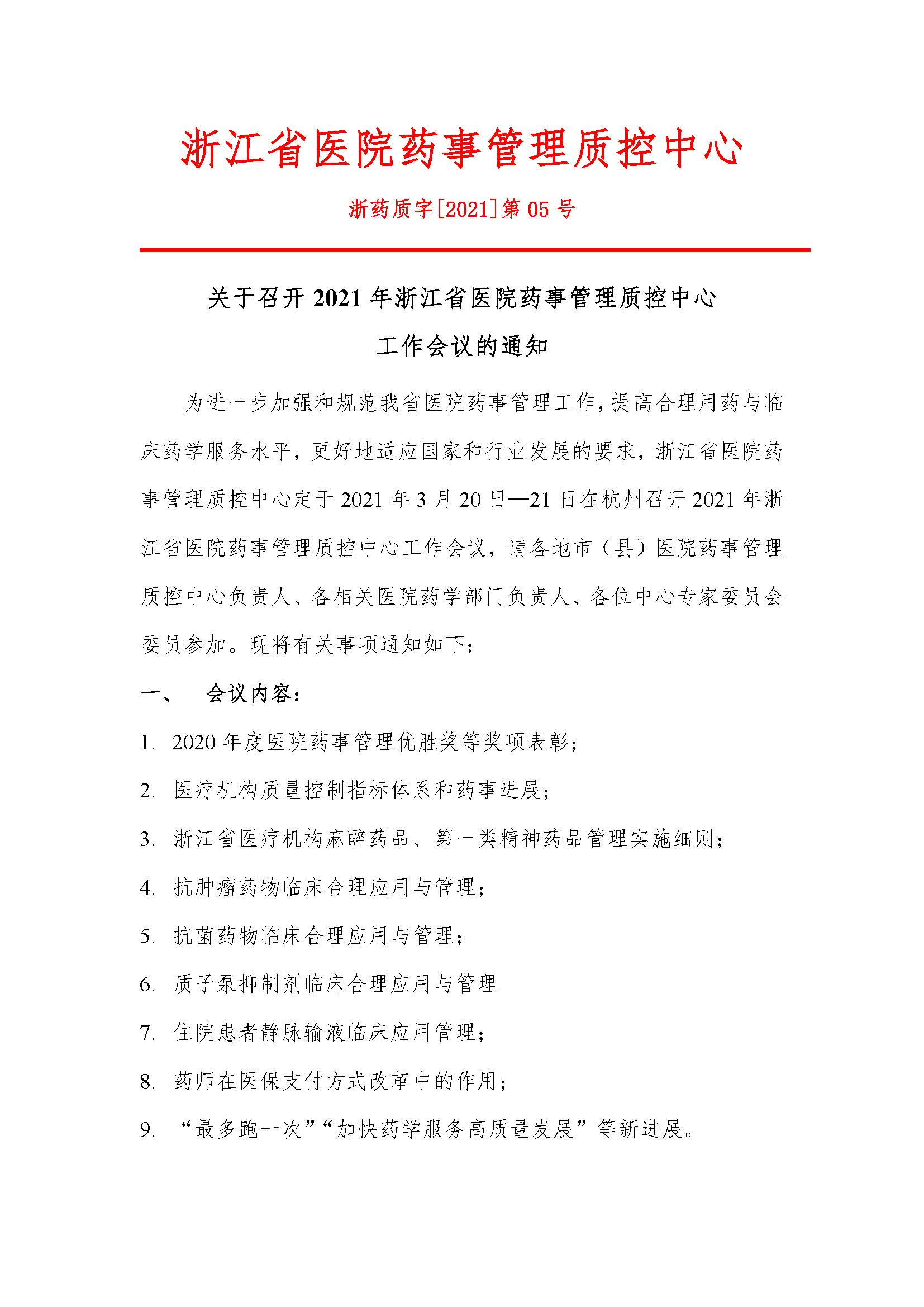关于召开2021年浙江省医院药事管理质控中心工作会议的通知
