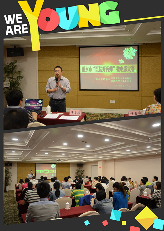 为培育和践行社会主义核心价值观,展示医药卫生事业发展成就,展现当代医院药师奋发向上、锐意进取、爱岗敬业的精神风貌,根据《关于举办丽水市“医院好药师”微电影大赛的通知》精神,2015年5月8日丽水市“医院好药师”微电影大赛在丽水国际大酒店隆重举行。本次微电影大赛由丽水市药学会医院药学专业委员会、临床药理学专业委员会主办,丽水市人民医院承办,评委与观众共计八十余人观看了比赛。