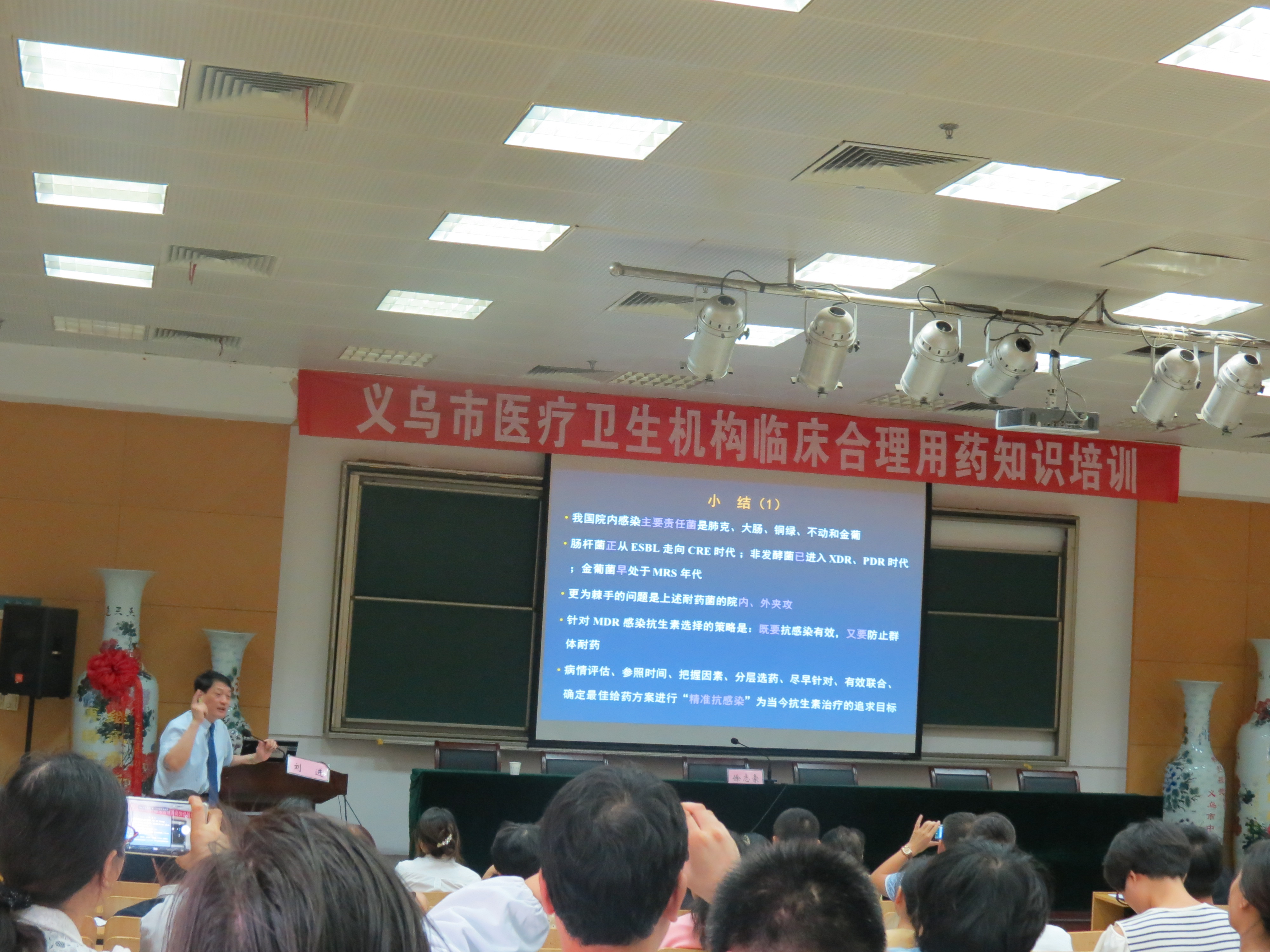 为进一步提高临床医务人员对抗菌药物和糖皮质激素的使用水平,义乌市药事质控中心于2015年9月16日组织了全市临床合理用药知识培训,各医疗单位临床医师及药师共计285人参加了培训。