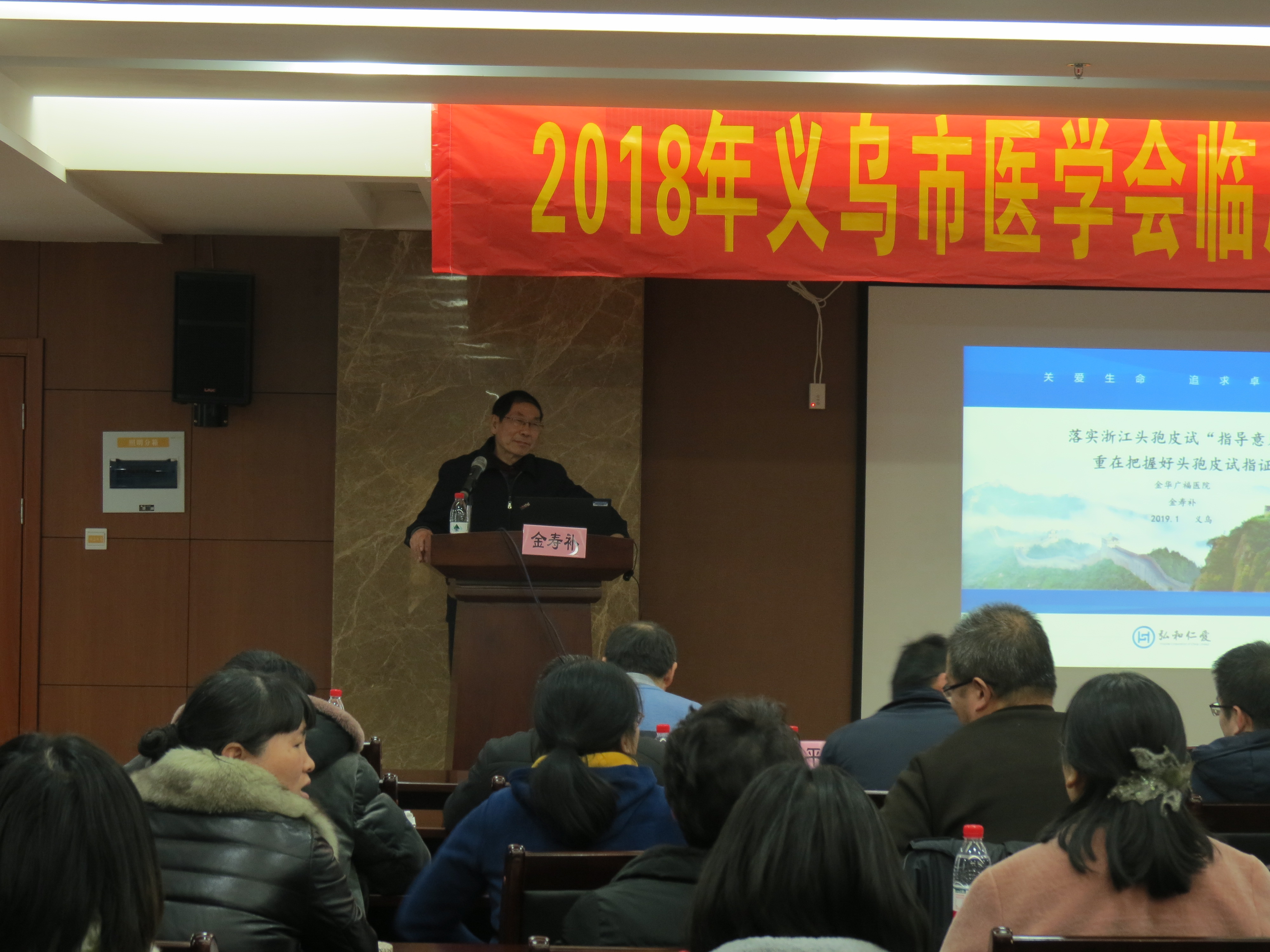 开幕式结束后由义乌市医学会临床药学专业委员会各位委员分别主持了学术会议,首先是赵平鸽主任委员向大家简短的介绍了2018年义乌市医学会临床药学专业委员会工作总结和2019年工作计划。接下来由浙江大学医学院附属第一医院药剂科王临润副主任就《关于加快药学服务高质量发展的意见》进行了政策解读;金华市广福医院金寿补副院长就现在的热点问题:落实浙江“头孢皮试指导意见”,重在把握好头孢皮试指征进行了详细的讲解;最后,义乌市中心医院中药科叶英响主任分别从中药饮片的合理使用、中成药的合理使用及中药注射剂的合理使用等方面进行了讲解。