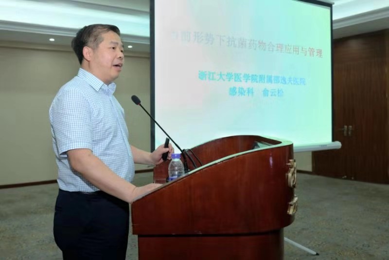 最后,会议开启另一重要议程,暨杭州市抗菌药物管理与持续改进培训,浙江大学医学院附属邵逸夫医院副院长、感染科俞云松主任为大家进行《新形势下抗菌药物合理应用与管理》的专题培训。俞院长从当前抗菌药物临床应用的形势、抗菌药物监管措施不断加强的大背景、全面推行抗菌药物合理应用管理(AMS)的必要性、广泛推行DRGs付费改革、等级医院评审对药品和抗菌药物比例的要求等5大方面做了深入浅出的解读和详细的阐释。俞院长认为,各基层医院虽然在抗菌药物管理方面存在各自的困难,但是应该努力起步,“做,总比不做好;能做多少,就尽量做多少”,结合各自医院的实际情况,推进抗菌药物合理应用团队的建设,可以将围术期预防抗菌药物使用的管理作为重点和突破口,结合相关指导原则与患者的具体情况,采取病例抽查等方式进行点评,能起到立竿见影的效果。