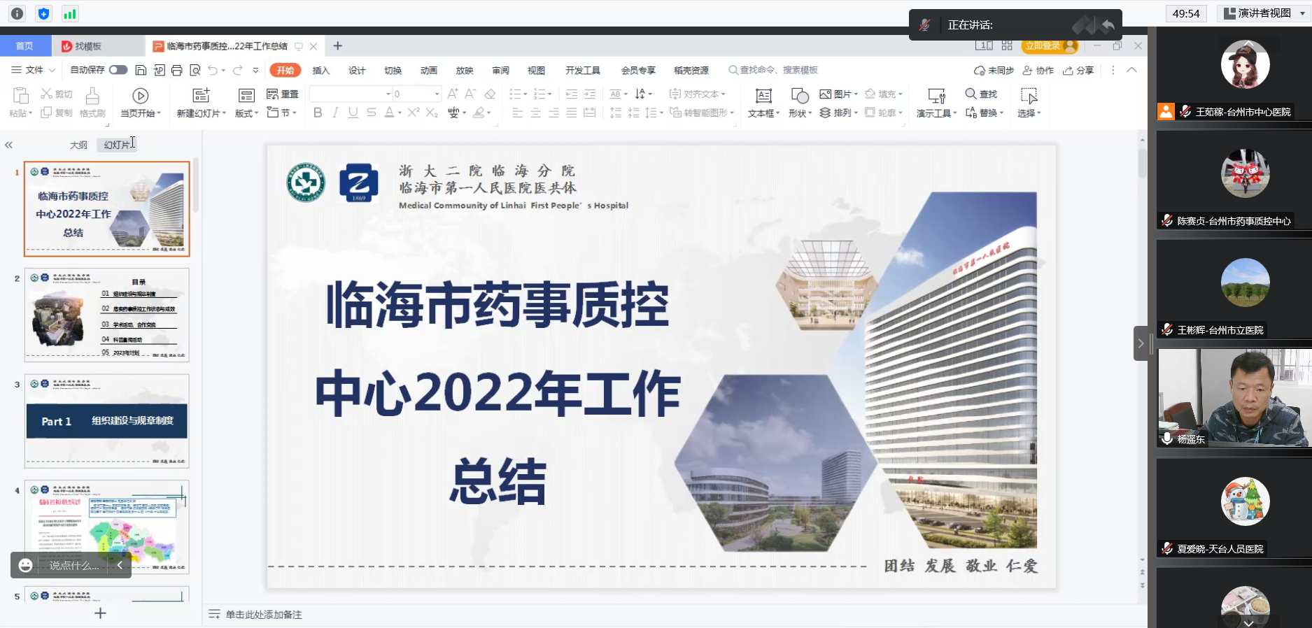 为了提升医院药事管理质控工作质量,切实履行各县市质控中心职责,促进合理用药,2022年11月28日,台州市医院药事质控中心年终工作总结会议在线上顺利召开。中心领导及各成员、各市(县)质控分中心主任及工作人员约20人参加此次会议。