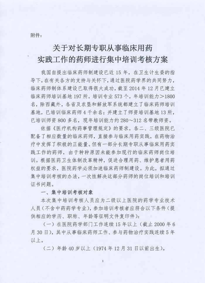 关于请省级医院协会协助组织长期专职从事临床用药实践药师集中培训考核工作的函