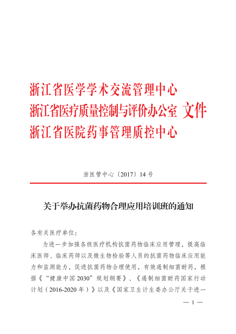 浙医中心 2017-14号 关于举办抗菌药物合理应用培训班的通知.pdf