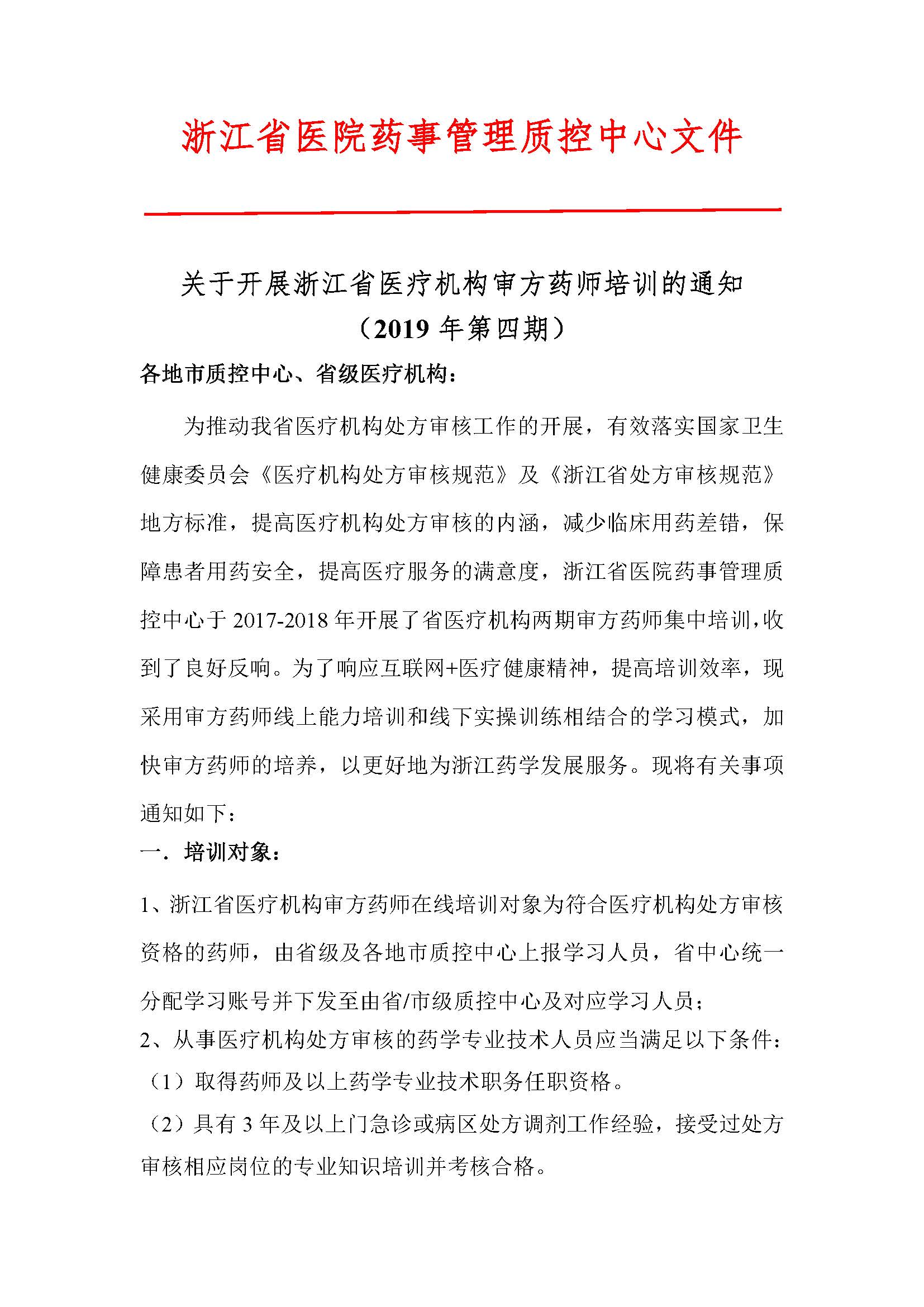 关于开展浙江省医疗机构审方药师培训的通知(2019年第四期)