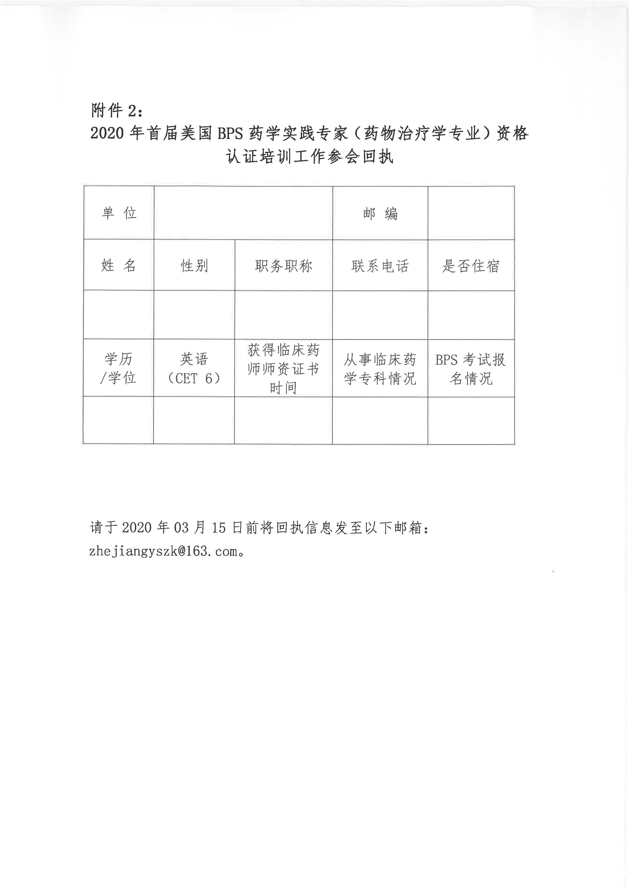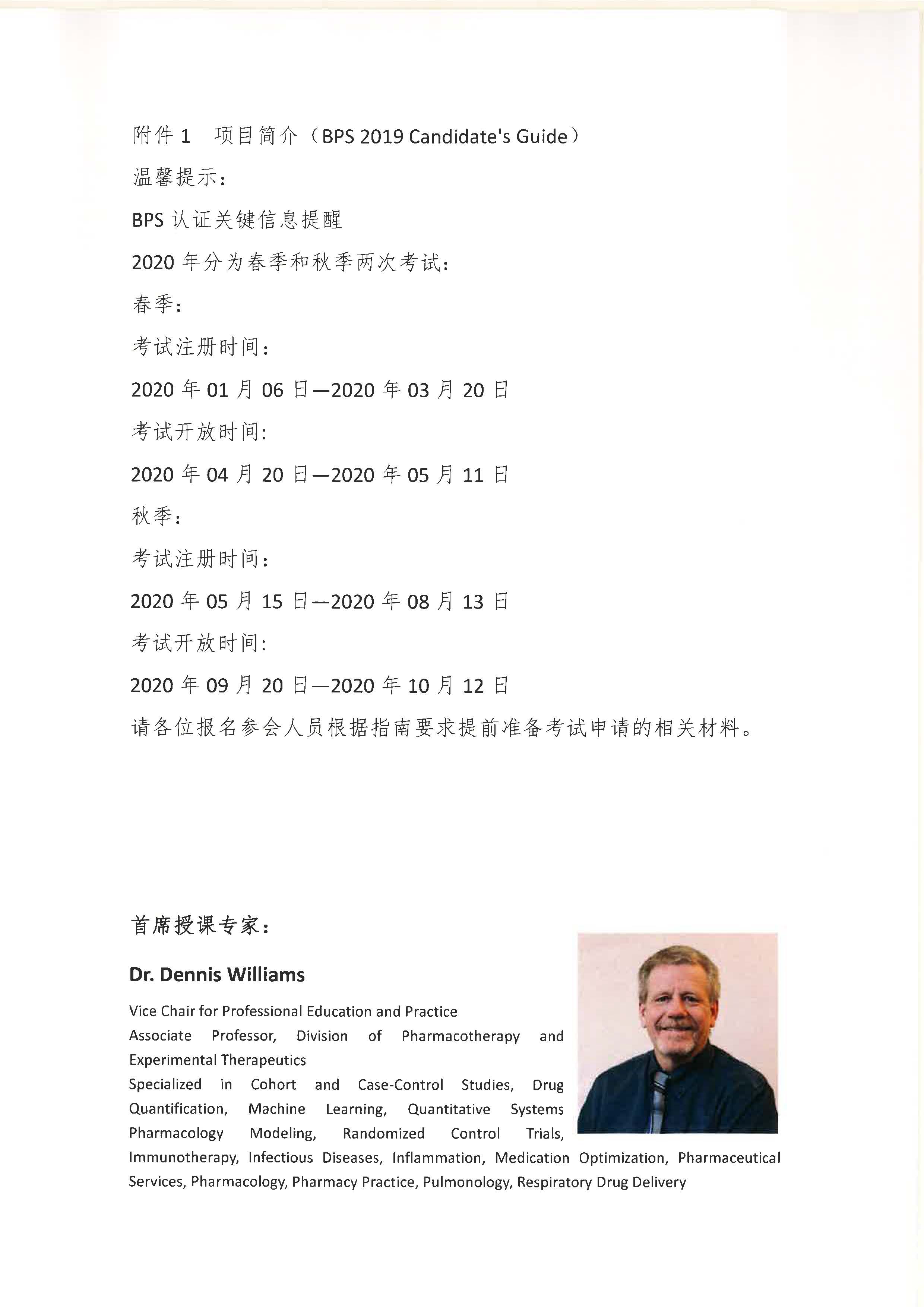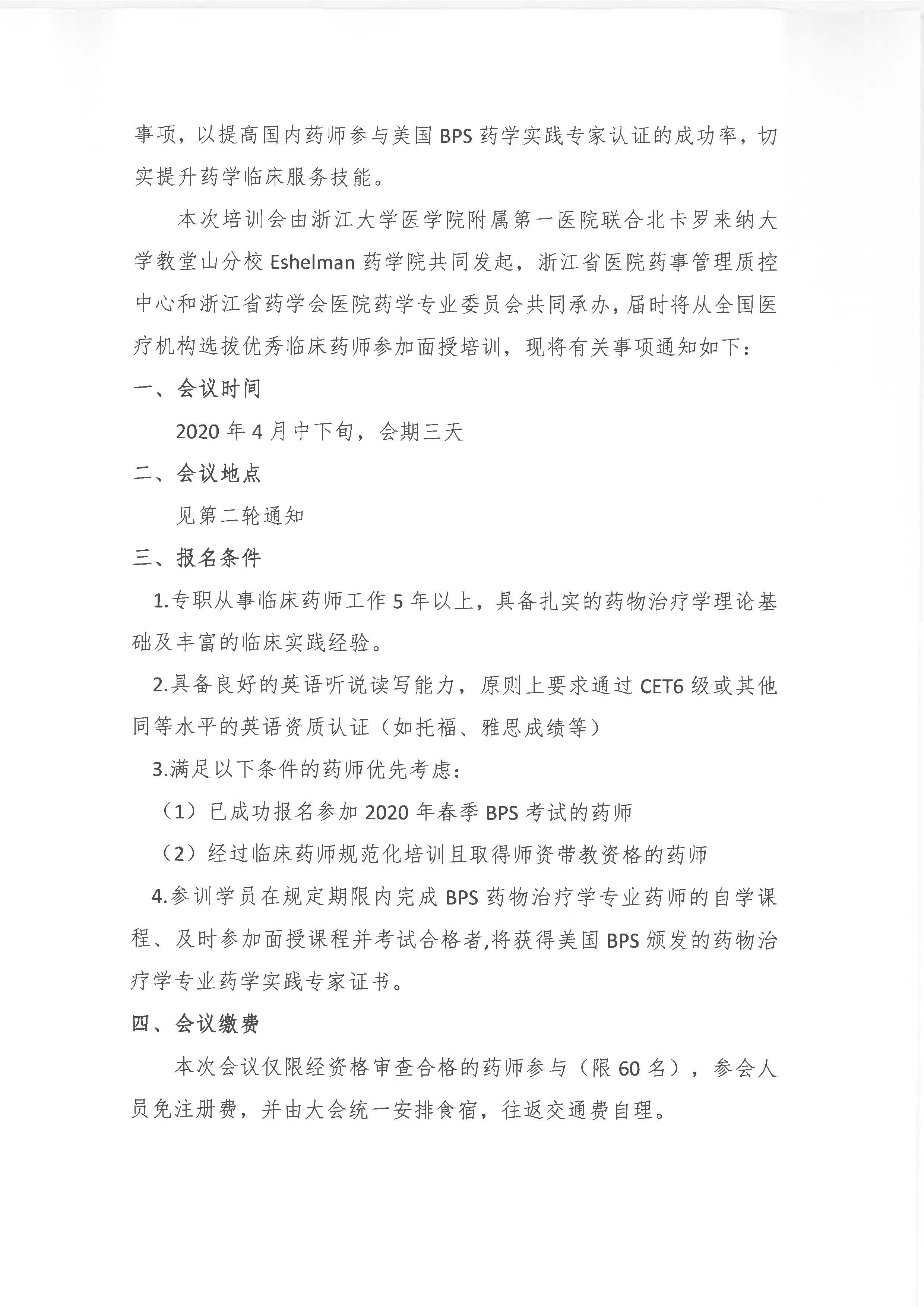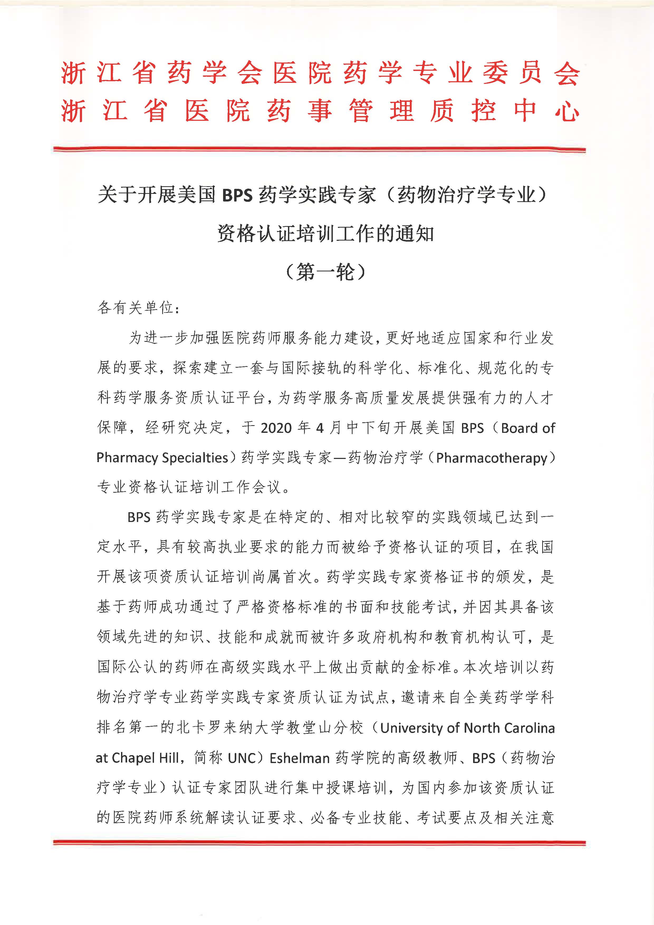 关于开展美国BPS药学实践专家(药物治疗学专业)资格认证培训工作会议的通知