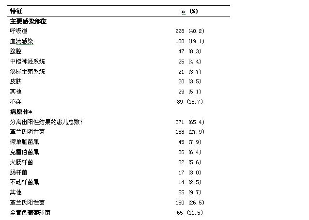 †阳性分离标本来源包括血液、尿液、脑脊液、呼吸系统(鼻咽部、气管和支气管肺泡灌洗)、粪便、切口及其他正常无菌体液(胸腔积液、心包积液和腹水)。
