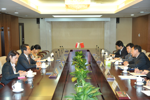 2013年8月22日下午,国家食品药品监督管理总局张勇局长会见了来访的新加坡驻华大使罗家良先生一行。张勇局长介绍了我国食品安全监管的主要情况和工作重点,并听取了罗家良大使对中新吉林食品区的介绍,双方就加强两国食品安全监管机构间的交流合作达成了意向。国际合作司、食品安全监管一司、药品化妆品注册管理司有关负责人参加了会见。
