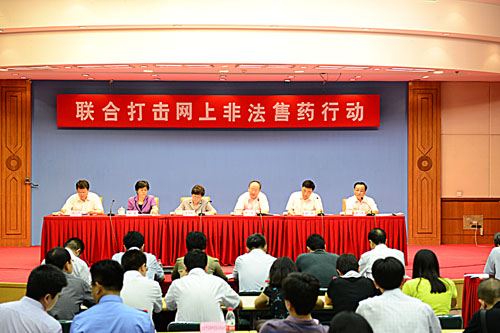 | 国家食品药品监管总局、国家互联网信息办公室、工信部、公安部、国家工商总局五部门共同开展的打击网上非法售药行动20日在京宣告启动。有关部门将通过清理违法有害信息、捣毁窝点、资格审核、宣传引导和鼓励举报等多种途径,联合整治网上违法售药行为,严厉打击利用互联网销售假药的违法犯罪活动。