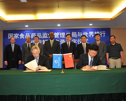 2014年8月27日,国家食品药品监督管理总局滕佳材副局长会见了世界银行中国局克劳斯·罗兰德局长一行。双方就共同关注的食品安全议题进行了深入交流,并在会后签署了《关于建立食品安全领域合作的谅解备忘录》。国际合作司、食监一司主要负责人,食监二司、食监三司相关负责人参加了会见及签字仪式。