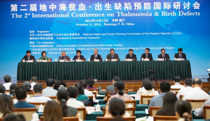 为了进一步推进地中海贫血防控工作,促进出生缺陷预防与控制,2014年10月11日,第二届地中海贫血暨出生缺陷预防国际研讨会在广西南宁召开。十一届全国人大常委会副委员长桑国卫出席开幕式并致辞,国家卫生计生委副主任王国强出席会议并讲话。十二届全国人大农业与农村委员会副主任委员、中国妇幼健康研究会会长江帆,广西壮族自治区副主席李康、国际地中海贫血联盟代表迈克尔出席会议。 桑国卫副委员长在致辞中指出,预防出生缺陷是国际社会高度关注的重大课题。中国政府一贯重视预防出生缺陷和提高出生人口素质工作。经过多年努力,全国出生缺陷防控体系不断加强,预防措施有效落实,工作机制逐步建立,服务的公平性和可及性明显提高。他表示中国将继续巩固和加强出生缺陷预防领域国际交流与合作,增进国家和区域间经验共享,不断深化出生缺陷综合防治工作,提升人民健康水平。 王国强副主任在讲话中强调,近年来中国政府针对孕前、孕期、新生儿等不同阶段,组织实施系列重大公共卫生服务专项,目前已初见成效。王国强副主任要求,要全力做好出生缺陷预防工作,大力推进地中海贫血防控项目。要扎实做好项目扩面工作,切实加强宣传教育,建立健全工作机制,努力提升服务质量。要坚持以人为本,结合国家免费孕前优生健康检查,为准备怀孕夫妇在孕前提供地贫筛查和诊断服务,推动预防关口前移,努力提高出生人口素质。 李康副主席在讲话中指出,广西高度重视出生缺陷预防和地中海贫血防控工作,近年来启动实施《地中海贫血防治计划》和母婴健康“一免二补”幸福工程,出生缺陷发生率和重型地贫儿出生率显著下降,妇女儿童健康水平明显提高。她表示广西将继续扎实推进地中海贫血和出生缺陷防控战略,为群众提供优质的防治服务,造福千家万户。 本次国际研讨会重点交流国际国内出生缺陷预防工作成效和经验,深入研究地中海贫血防控策略,共同探讨战胜出生缺陷的有效途径和方法。会上,国家卫生计生委妇幼司介绍了中国出生缺陷综合防治工作进展和地贫防控项目,专门就制订印发的《地中海贫血防控试点项目技术服务规范(试行)》进行了全面解读。妇幼司秦耕司长就推进地贫防控项目深入实施提出了具体要求。国际地中海贫血联盟、亚洲地中海贫血协作组、印度尼西亚血液学会、中国医药大学(台湾)附设儿童医院的专家介绍了国际地中海贫血防治最新研究动态和进展。广西卫生计生委李国坚主任介绍了广西地中海贫血防控工作经验,广东、重庆卫生计生部门和广西医科大学介绍了相关工作实践和研究成果。 会议通过了预防控制地中海贫血暨出生缺陷《南宁宣言》,呼吁国际社会进一步关注防控工作,投入更多资源提高出生人口素质。出席会议的领导共同启动了中国地中海贫血防控全覆盖项目,推动我国地贫预防工作深入开展。 为探索建立地中海贫血群体预防工作模式,2012年国家卫生计生委启动实施地中海贫血防控试点项目,在广西等7个地中海贫血高发省份免费为育龄夫妇提供地贫筛查、基因检测和产前诊断服务。截至2013年,试点地区共为15.3万对夫妇提供免费地贫筛查,为建立完善有效工作机制奠定了基础。2014年,项目实施范围进一步扩大至10个省(区、市)的71个县(市、区),实现地贫高发省份全覆盖,更多的育龄夫妇将因此受益。 本次会议由国家卫生计生委、国际地中海贫血联盟共同主办,中国妇幼健康研究会、广西自治区卫生计生委、广西医科大学共同承办。来自亚洲地中海贫血协作组、泰国玛希隆大学地中海贫血研究中心、印度尼西亚血液学会、中国医药大学(台湾)附设儿童医院、台湾地中海贫血协会等国家、地区和组织的代表,国家卫生计生委相关司局和部分省(区、市)卫生计生部门代表,国家卫生计生委部分委级重点实验室负责人,中国妇幼健康研究会、广西医科大学的代表以及相关专家约150余人参加会议。