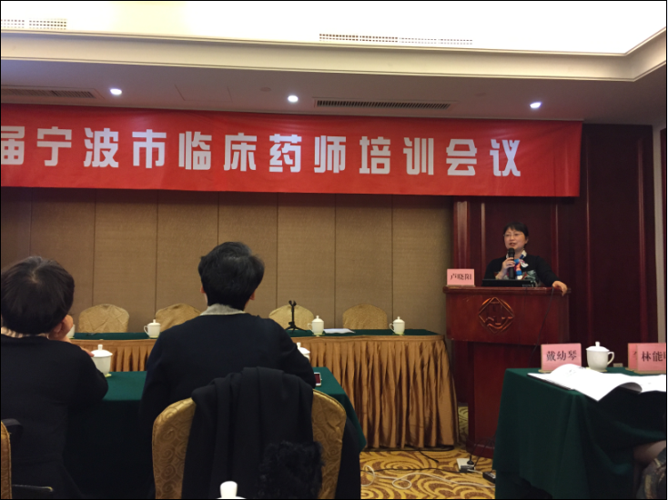 会议由宁波市医院药事管理质控中心副主任委员、宁波市第二医院药剂科戴幼琴主任主持,首先由宁波市医院药事管理质控中心主任、宁波市医疗中心李惠利医院李宏副院长致辞,李院长对临床药师提出了更高的希望与要求。