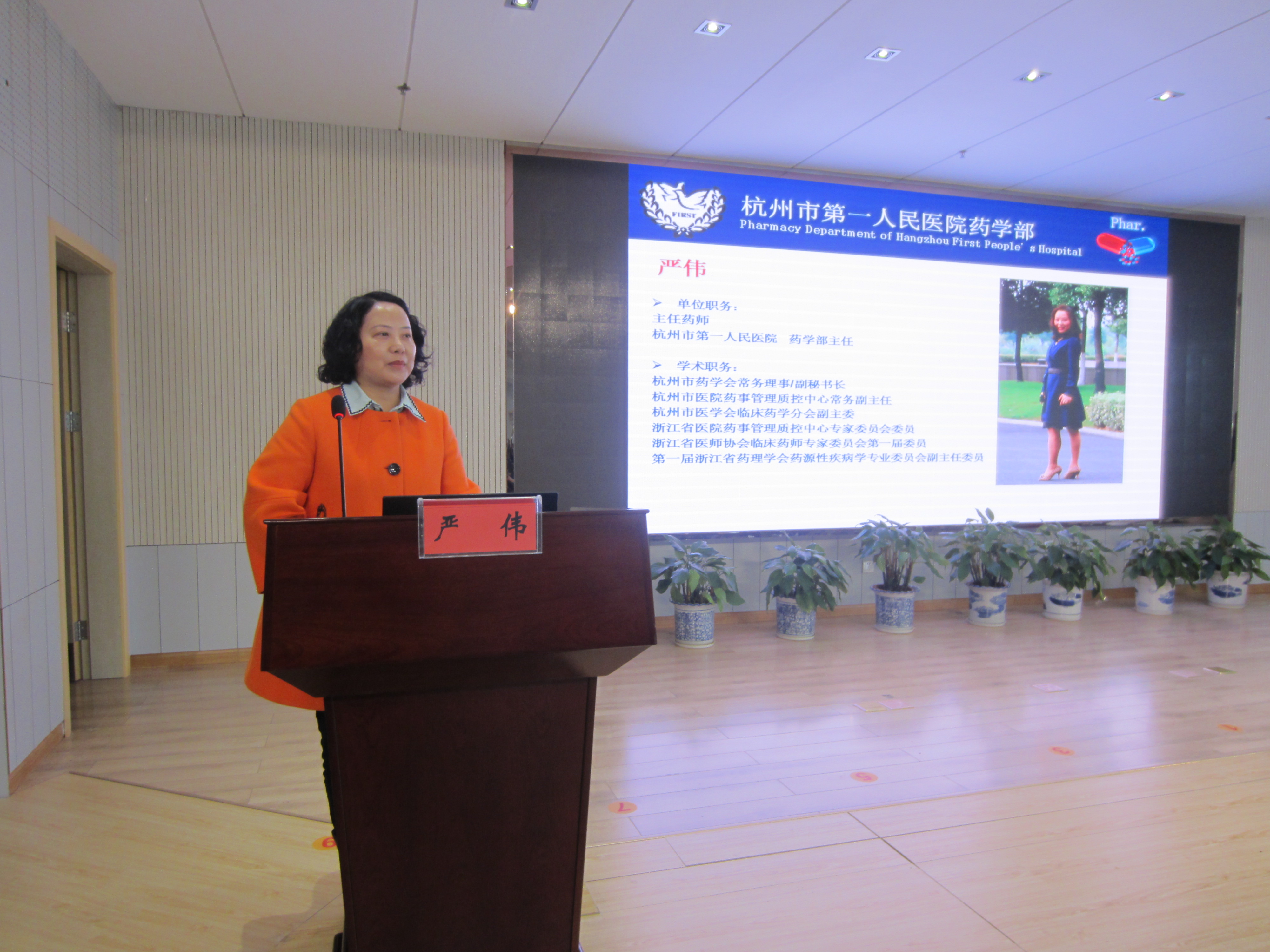 会议邀请了杭州市医院药事管理质控中心常务副主任、杭州市第一人民医院药剂科主任严伟和杭州市医院药事管理质控中心副主任、杭州市红会医院药剂科主任徐颖颖两位专家出席会议并做报告。