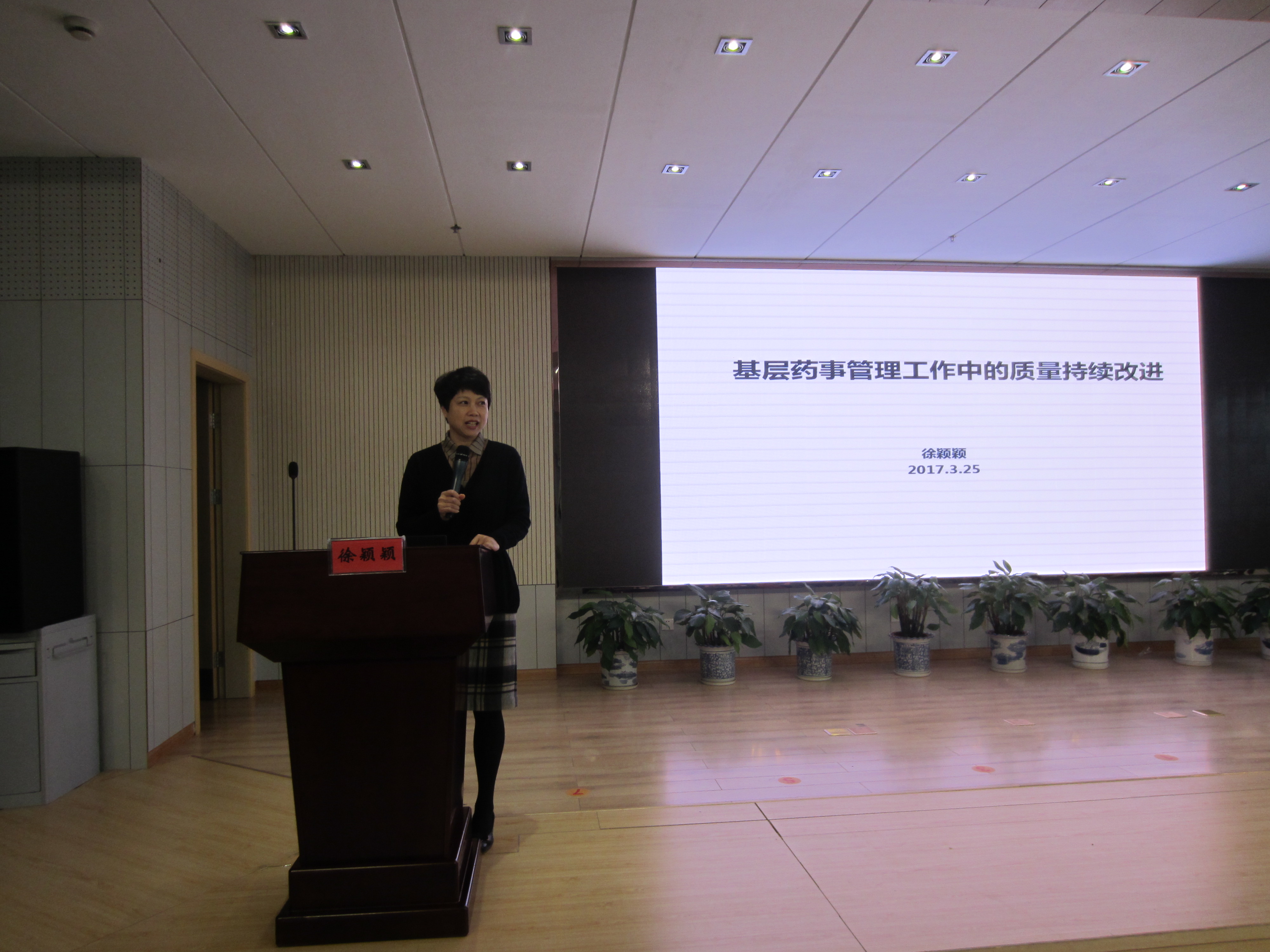 严伟主任、徐颖颖主任分别做了有关《医疗机构麻醉药品、精神药品规范化管理的知识培训》《基层药事管理中的持续质量改进》的报告。两位专家的报告都非常精彩、实用。报告结束后,两位专家还解答了很多药师们实际工作中遇到的问题,现场提问气氛热烈,让两位专家切实感到了基层药师们的好学精神。
