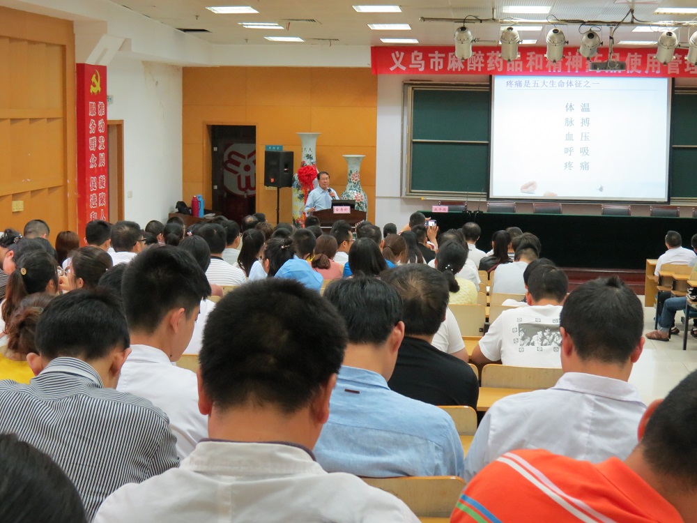 2018年5月31日,义乌市药事质控中心在市中心医院学术报告厅对全市临床医师和药学专业技术人员进行了麻醉药品和精神药品临床使用与管理知识培训,全市各医疗机构需要麻醉药品处方权的执业医师和需要调配权的药师共计275人参加此次培训。
