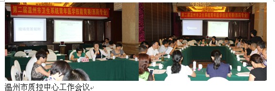 在下午现场竞答比赛前,召集全体温州市医院药事管理质控中心成员,召开温州市医院药事管理质控中心工作会议。工作会议由王淑君主持,会议开始温州市卫生局医政处处长郑云蒸就质控中心下半年的工作重点作布置,接着王淑君传达省医院药事质控中心工作会议精神,最后质控中心成员讨论安排“抗菌药物临床应用专项检查”和“加强特殊管理药品管理专项检查”工作方案等。