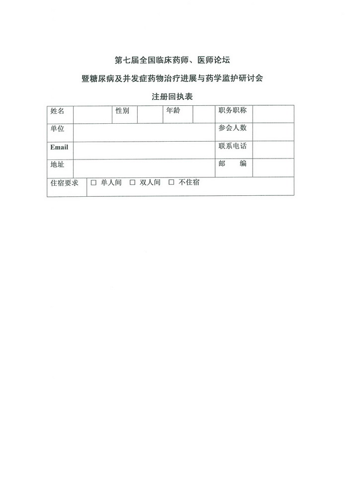 第七届全国临床药师、医师论坛暨糖尿病及并发症药物治疗进展与药学监护研讨会第一轮通知