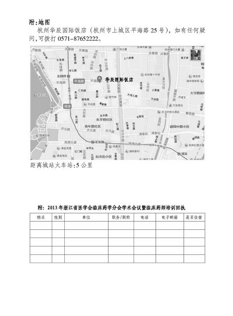 杭州华辰国际饭店(杭州市上城区平海路25号)。附酒店线路图。