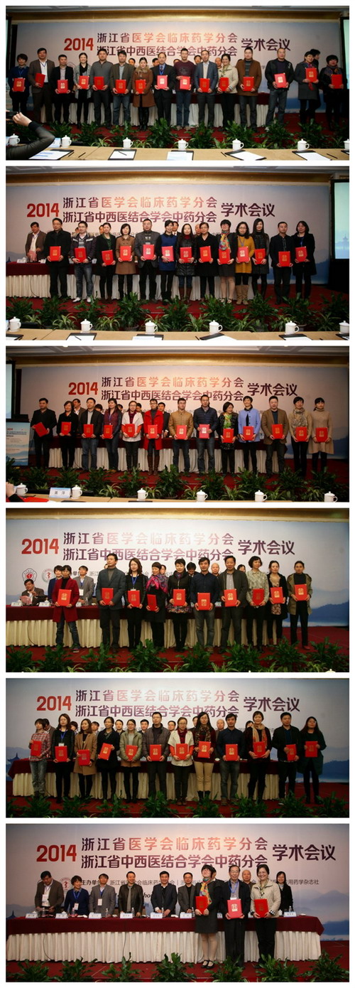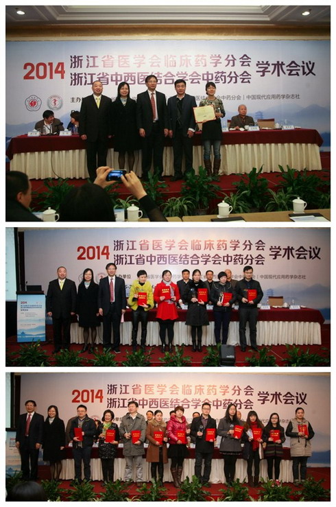 浙江省医院药事管理质控中心颁奖:“医院药事管理优胜奖”、“医院处方管理优秀奖”、“医院麻醉药品、精神药品管理优秀奖”、 “浙江省抗菌药物管理优胜奖”、 “浙江省药事信息管理优秀奖”、 “浙江省优秀药事管理质控中心奖”